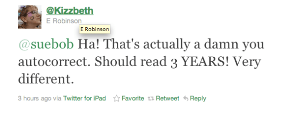 Think what a steely rep I could have had if I’d just let that tweet stand as it was. Apparently even my iPad is more hard core than I am.